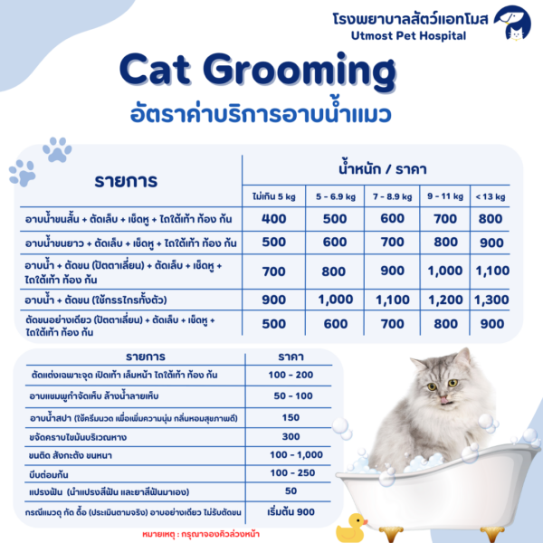 ที่โรงพยาบาลสัตว์แอทโมส เรามีบริการอาบน้ำและตัดแต่งขนแบบครบวงจร โดยพนักงานผู้เชี่ยวชาญด้านการดูแลสุขภาพขนและผิวหนังในสัตว์เลี้ยงที่ผ่านการอบรมมาเป็นอย่างดี (พิเศษ🎁 ตรวจสุขภาพเบื้องต้นก่อนอาบน้ำทุกเคส)